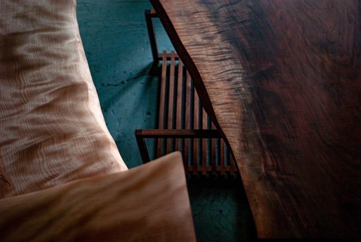 Wooden furniture should be cleaned regularly with a damp cloth. To maintain its natural beauty, use a plant-based oil finish every few months, depending on the environment and usage.