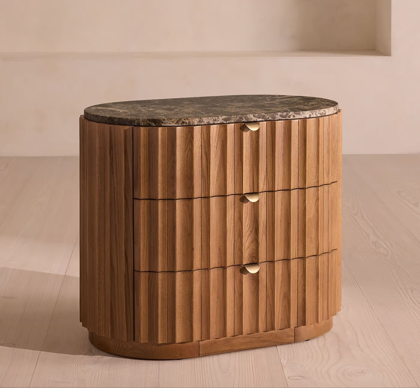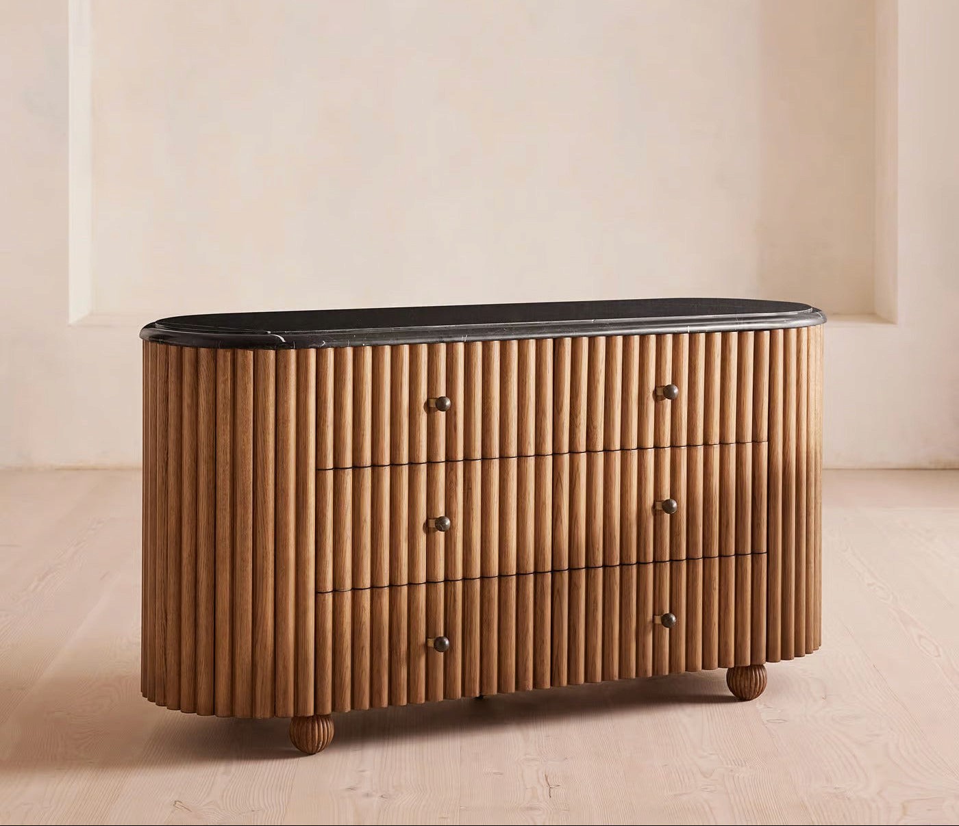 Designed with both aesthetics and functionality in mind, the storage units, like the Fawn and Ena collections, feature smooth, hand-polished surfaces and practical push-to-open drawers. These pieces fit effortlessly into modern spaces, with their sleek frames and elevated profiles giving a sense of airiness.