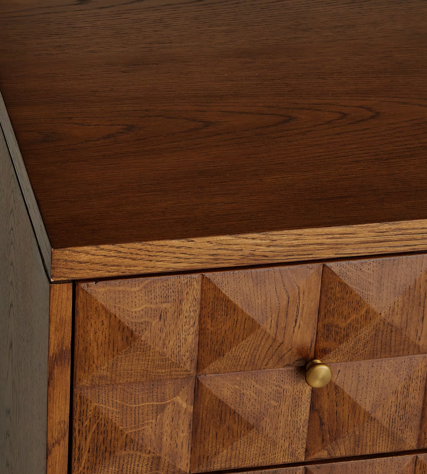 • Hand-carved pyramidal drawer faces