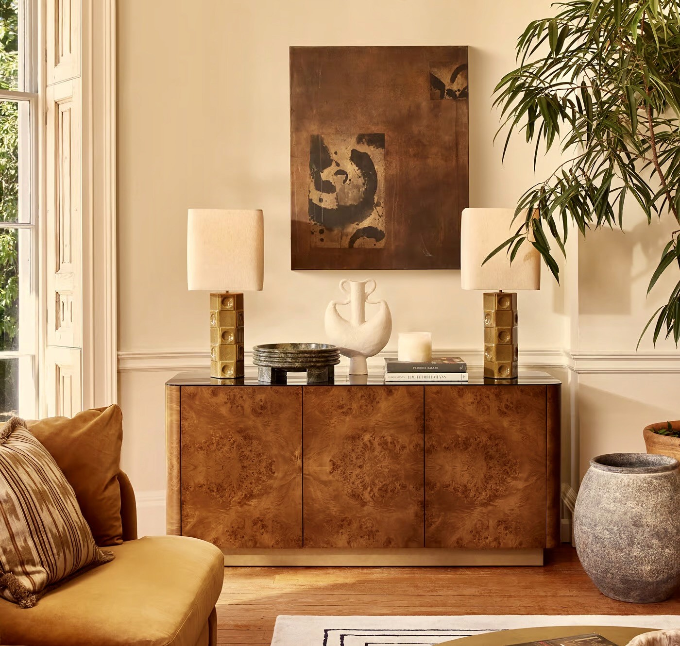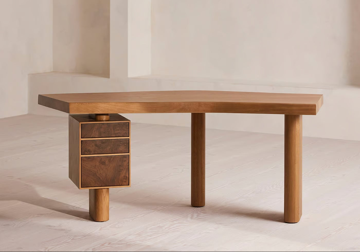 Themnós, derived from the Greek word “θέμνῐς” (law, order, divine structure), reflects the desk’s balance between aesthetic rigor and practical utility. Whether housing a writer’s papers or a designer’s plans, this desk invites deep focus, grounding the room with sculptural strength.
